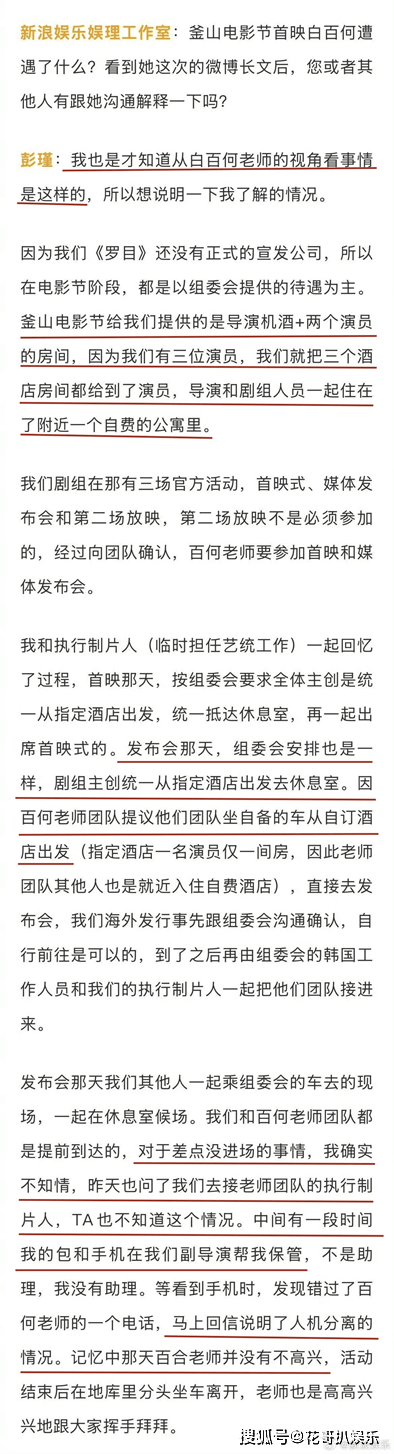 白百何说自费去釜山电影节这事也存疑。制片人说釜山电影节只有三个名额,导演还把自己的名额让给了演员,自己自费住酒店。