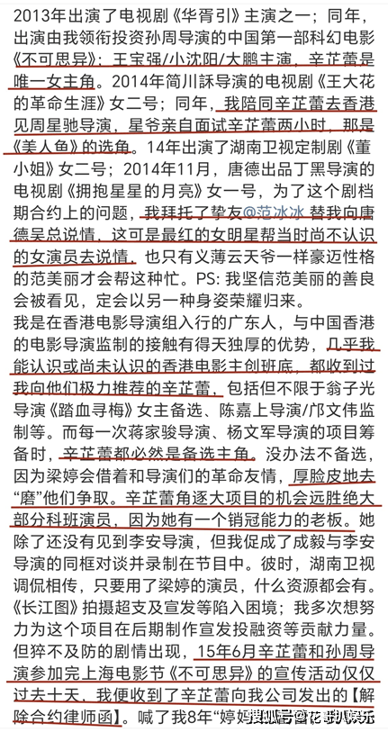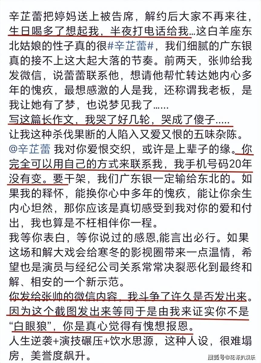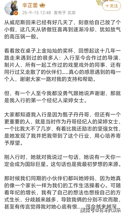 毕竟辛芷蕾和前经纪人就上演过这么一出:拿下威尼斯影后后,她突然发文向决裂多年前经纪人求和,言辞恳切地说自己对她有愧,现在才有勇气感谢她的帮助。