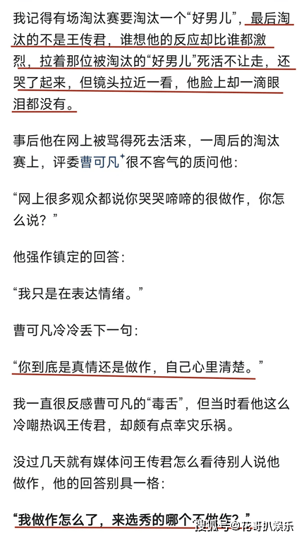 这些年王传君一直走清高艺术家路线,可当年为了出名,他明明学的是表演,却跑去参加《加油!好男儿》,被曹可凡戳破作秀后,还理直气壮地说“来参加节目的谁不做作”。