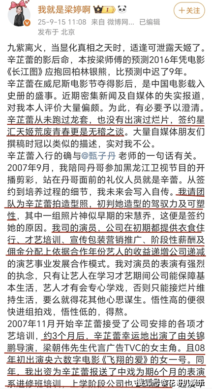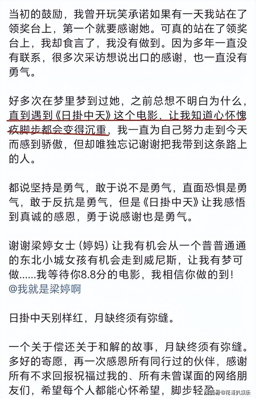 相比之下梁婷就真诚多了,还特意发了长文,字字情真意切,看得出来她当年是真的为辛芷蕾付出了很多:不仅照顾她的衣食住行,还让这个毫无背景的小演员,出道三个月就和影帝梁朝伟合作。