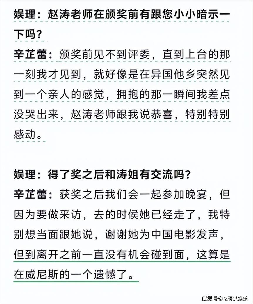 网友们还发现,辛芷蕾可能是真的介意大家说她得奖靠赵涛,这么长时间了,至在采访里稍微提了一句感谢。