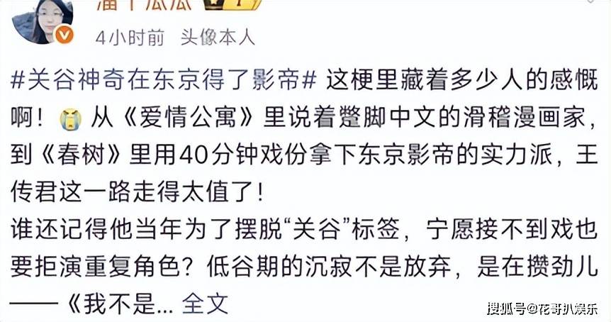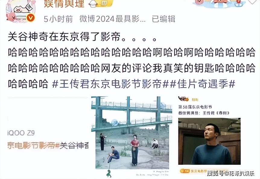 更有意思的是,按照这个说法,王传君应该在11月3号就知道自己得奖了,可领奖时居然能装出一副刚知道的样子。但凡在演戏的时候有这么好的演技,也不用一直立人设。