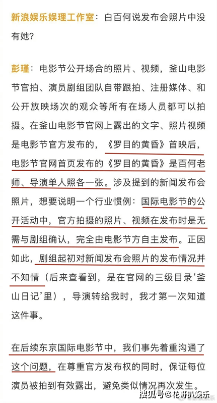 至于发布会照片没有她,那是电影节那边选的图,压根没通知剧组。