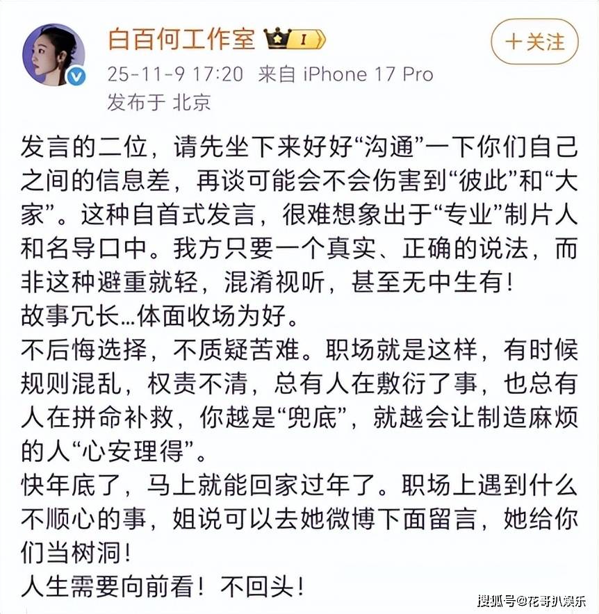 不得不说,导演这波回应确实很体面,既解释了来龙去脉,又没有狠踩白百何,只说大家角度不同,相信这不是白百何的本意。