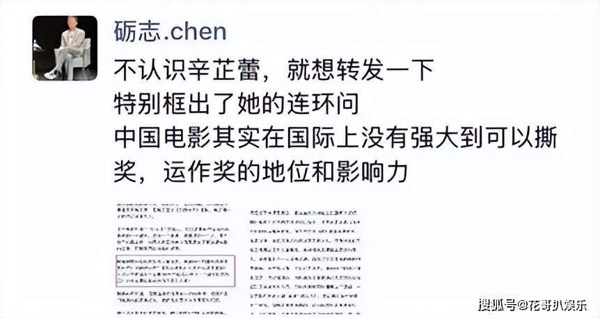 这边郝蕾的瓜还没吃完,公关圈大佬陈砺志又凑了上来。他看似中立地表示“中国电影人哪来的能力撕奖”,实则明晃晃地在为辛芷蕾站队,暗示她得奖完全靠自己的实力,不靠任何人。
