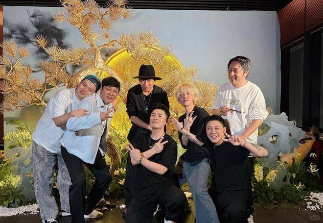 和之前的大合影比起来,这次合影人少了很多,但显然都是核心人物。寿星陈赫站在中间摆了个帅气的pose,邓超站在其身后配合凹造型。邓超这次显然也是精心打扮了一番,虽然也是一身黑衣,但罕见戴着帽子和项链,让人险些没认出来。