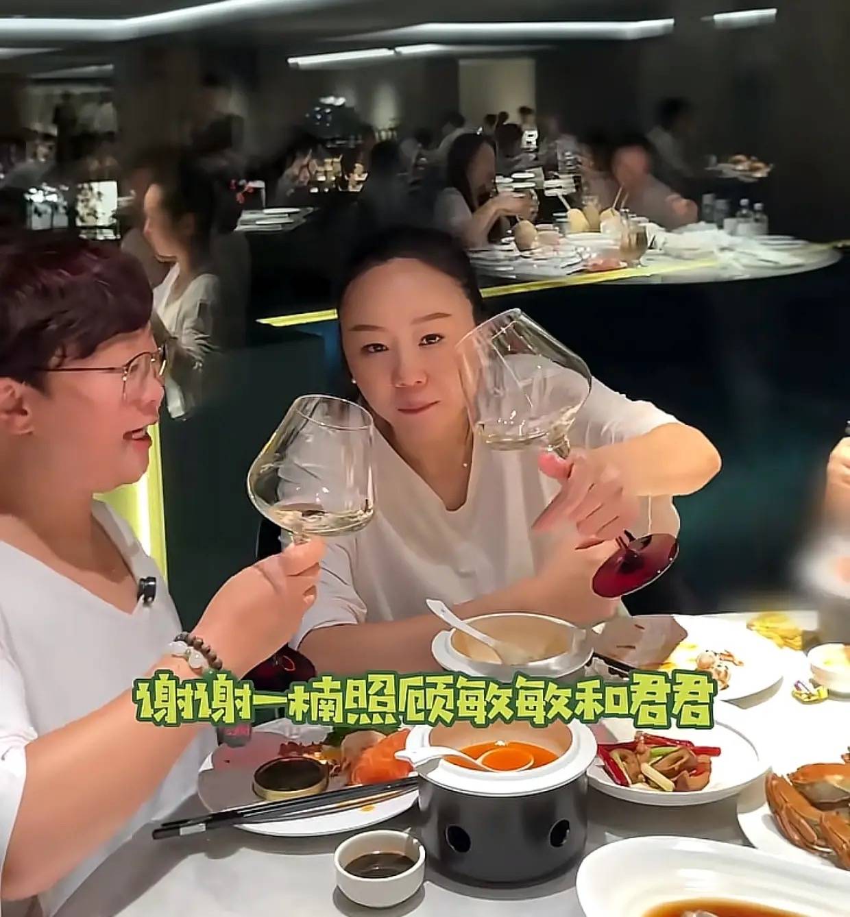 饭桌上,嬢嬢还对王一楠表示了感谢。谢谢她照顾敏敏和君君,应该就是娘娘的儿子和儿媳。王一楠在上海生活,嬢嬢一家也跟着在上海,大概率是沾了王一楠的光。