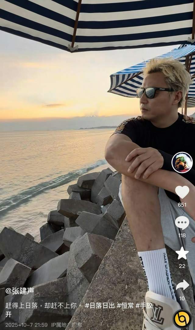 早在10月份的时候,张建声就曾发文透露自己的心绪:赶得上日落,却赶不上你。