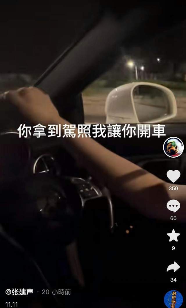 11月11号,知名港星张建声于视频账号上分享了一段令网友担心的画面,配文也是惹来担心:一年前的晚上,我兑现了承诺,你拿到驾照我让你开车,那一晚,也是我们分道扬镳的一晚。
