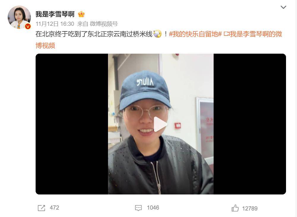 11月12日,李雪琴一条在北京吃上“东北正宗云南过桥米线”的动态,瞬间点燃了网友的调侃神经。她不仅晒出视频详述体验,更让这道名字自带“绕口令”气质的