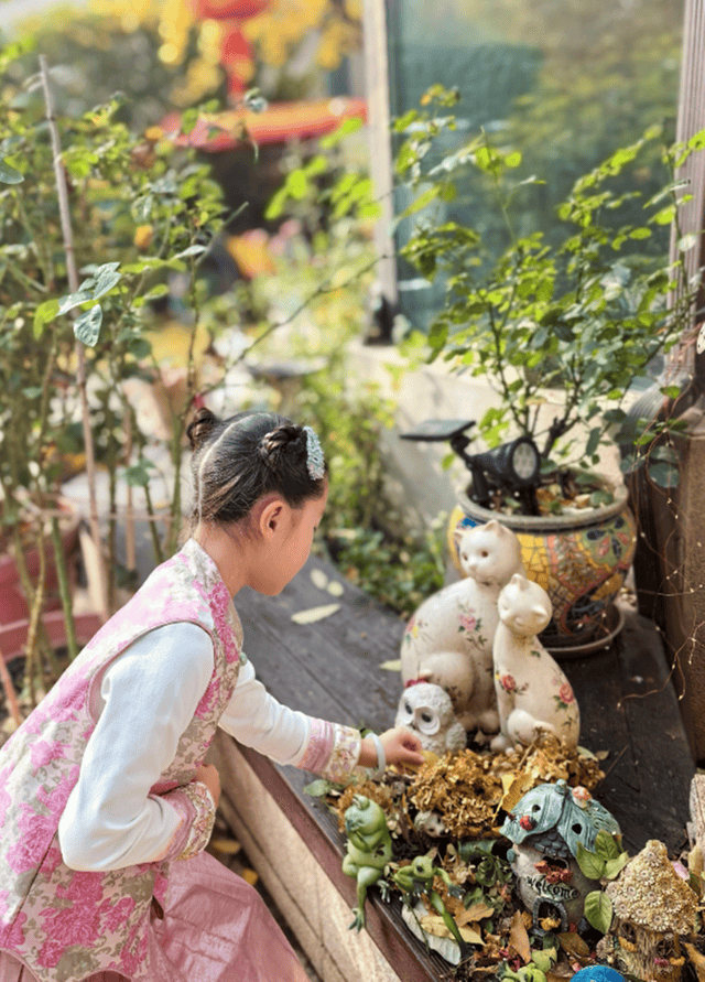 跟随着女儿步伐记录院子秋天美景的张丹露,不难看出,在布置这个院子时她花费了不少心思,院子里除了各种树木花草外,还有各种精致的小摆件,简直像个小型的植物园,在这样的环境中生活一定很舒适吧。