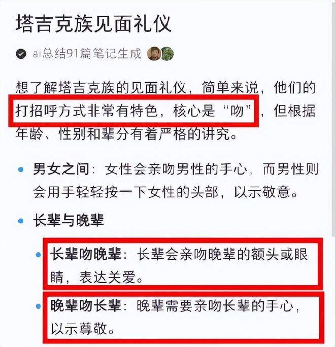 从画面来看,沙溢是亲吻宋雨琦的额头,而且第一次还亲到了头饰上。多位网友也科普了这是塔克吉族的见面礼,称长辈确实会吻晚辈的额头或眼睛表达关爱。照片中宋雨琦也没有回避,乍一看,似乎没有什么问题。