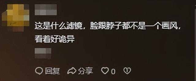 有网友调侃:“这是用了什么神奇滤镜,脖子和脸根本不是一个画风啊!”
