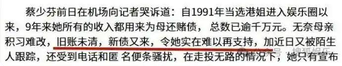 蔡少芬的妈妈好赌成性,完全把女儿当摇钱树,看她成名后更是越玩越大。