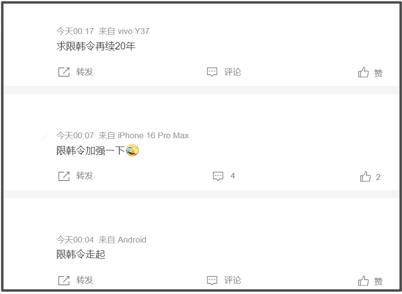 ——韩流早已经衰退,不管是韩团、韩星还是韩剧、韩影,愈发无人买账,越来越多人意识到韩娱虚假繁荣,不希望看到他们来中国圈钱,呼吁加强限韩令呢。