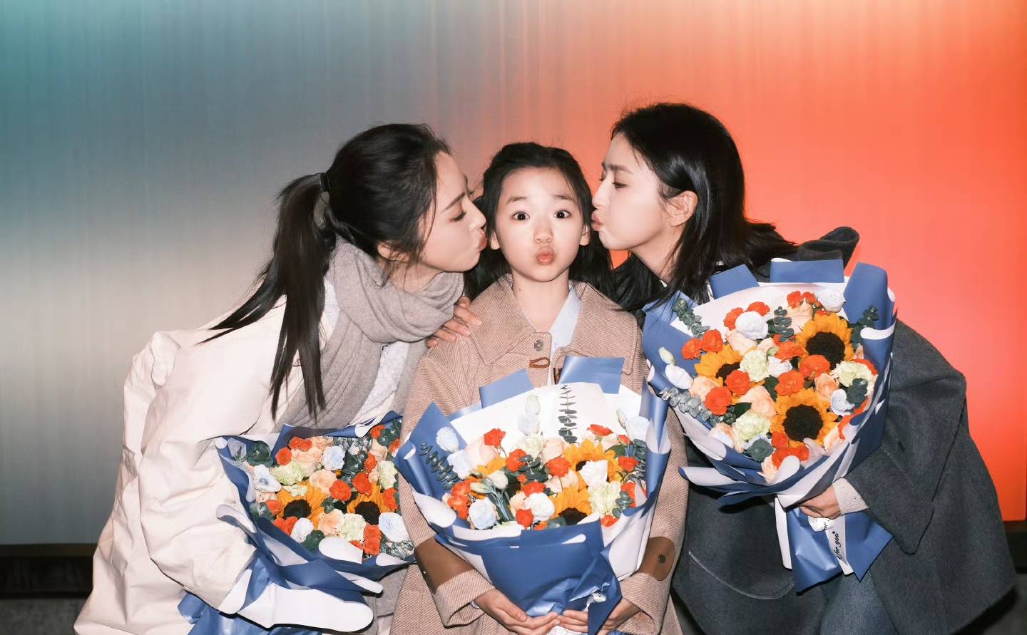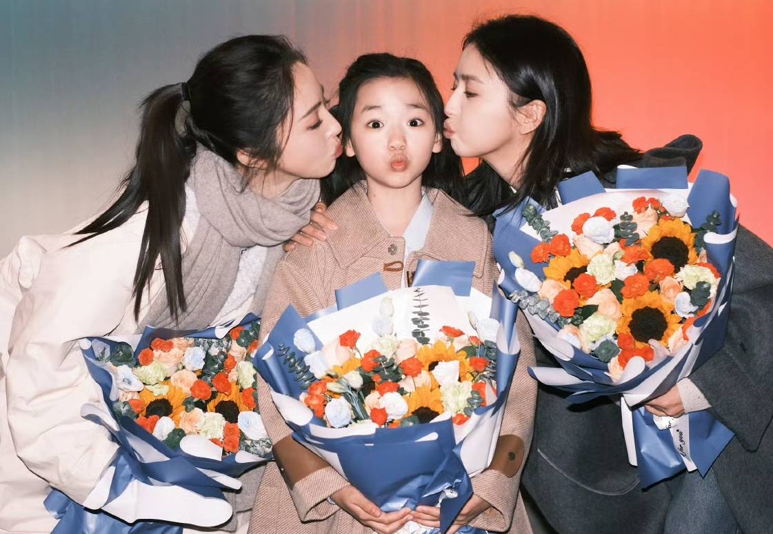 董璇、小酒窝、佟丽娅同框,真的很像两位大姐姐带着一位妹妹,没啥违和感。董璇与佟丽娅都亲向小酒窝的脸颊,看起来很有爱、很温馨。