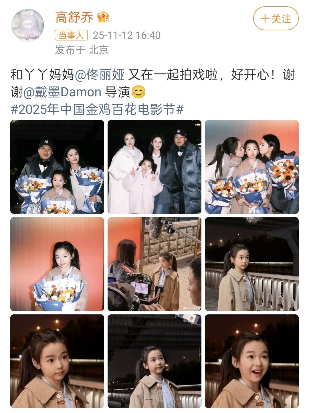 11月12日,小酒窝在社交平台上晒出了与佟丽娅的合照,也晒出了自己拍戏现场照。小酒窝发文写道:“和丫丫妈妈又在一起拍戏啦,好开心!谢谢导演。”