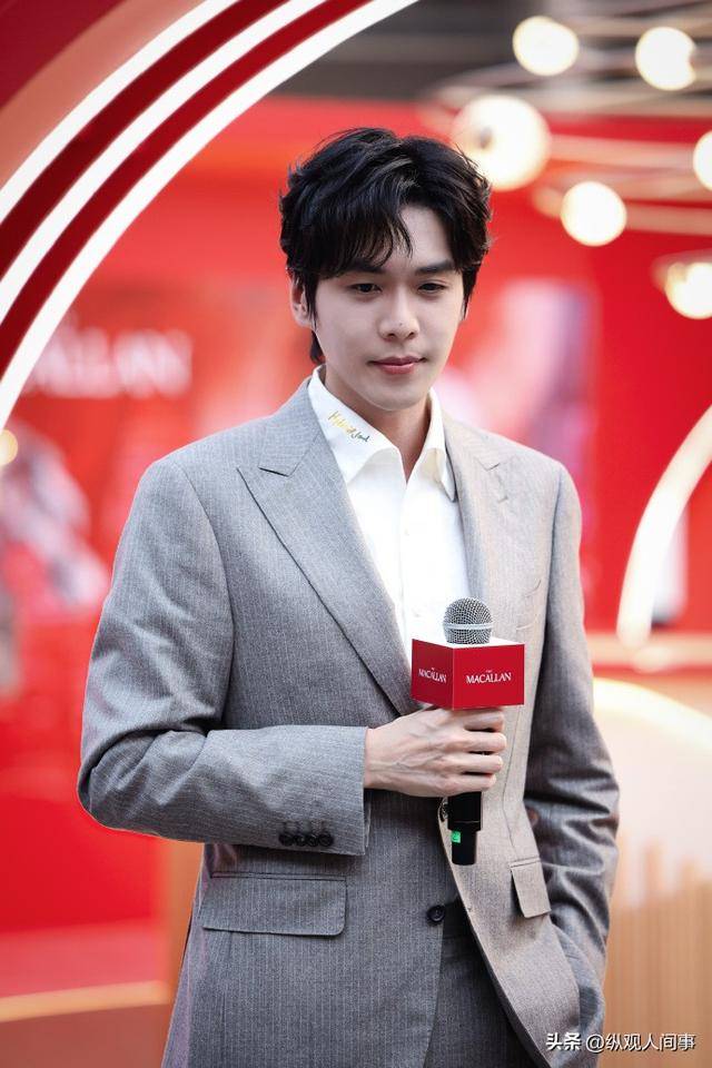 一身浅灰条纹西装亮相活动现场,帅上热搜,# 张若昀麦卡伦品牌形象大使# 阅读量 6 小时破 2 亿。