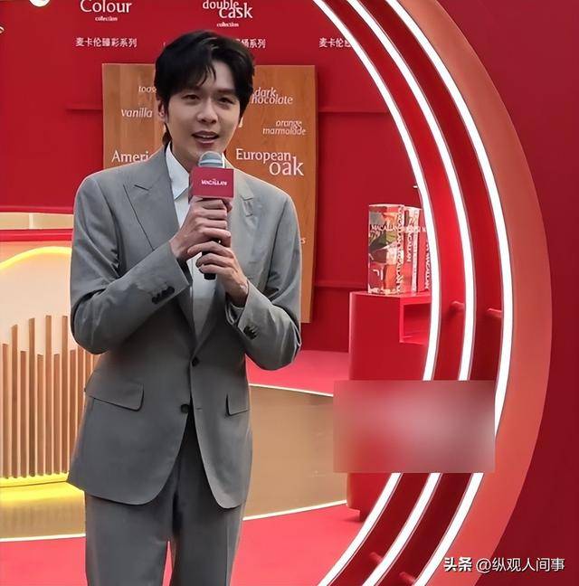 现场照片里,他手持麦卡伦威士忌,站姿端正,身体微微前倾,和嘉宾交流时,眼神专注,嘴角带着礼貌的微笑。