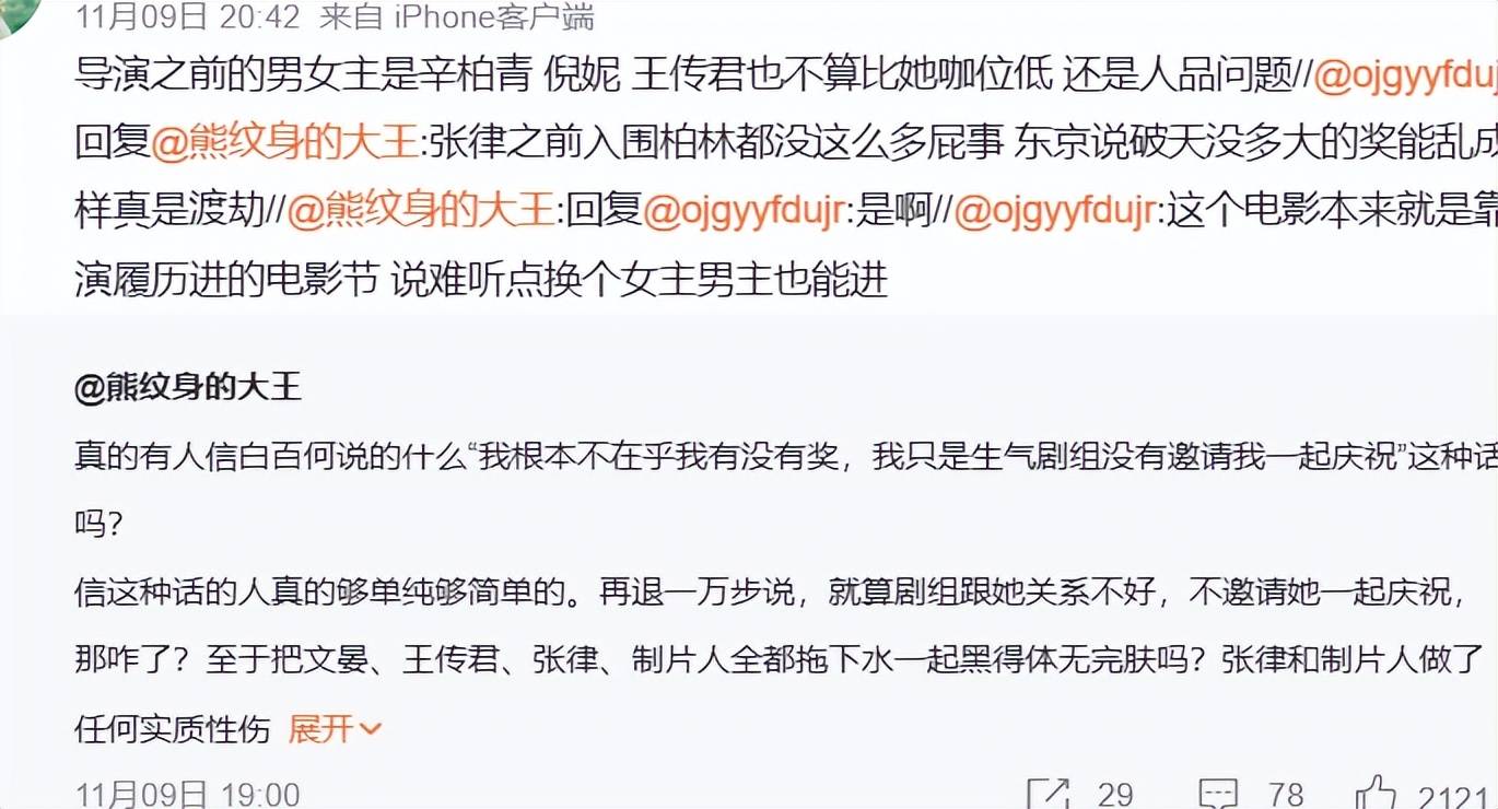 这两位网友都是北京IP,看两人之前的动态也是以文艺和电影为主,说的话有几分可信度。