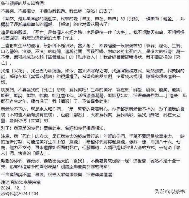 后来琼瑶在《雪花飘落之前》里写道,插管的决定让她觉得背叛了丈夫,字里行间全是悔恨。