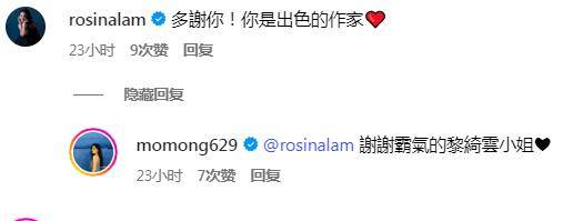 吴沚默还特别感谢锺澍佳导演令她的作品可以成为剧集,亦感谢每一位导演编剧的努力。而姚子羚、岑丽香、林夏薇、姚子羚留言感谢Momo写出如此出色的小说!