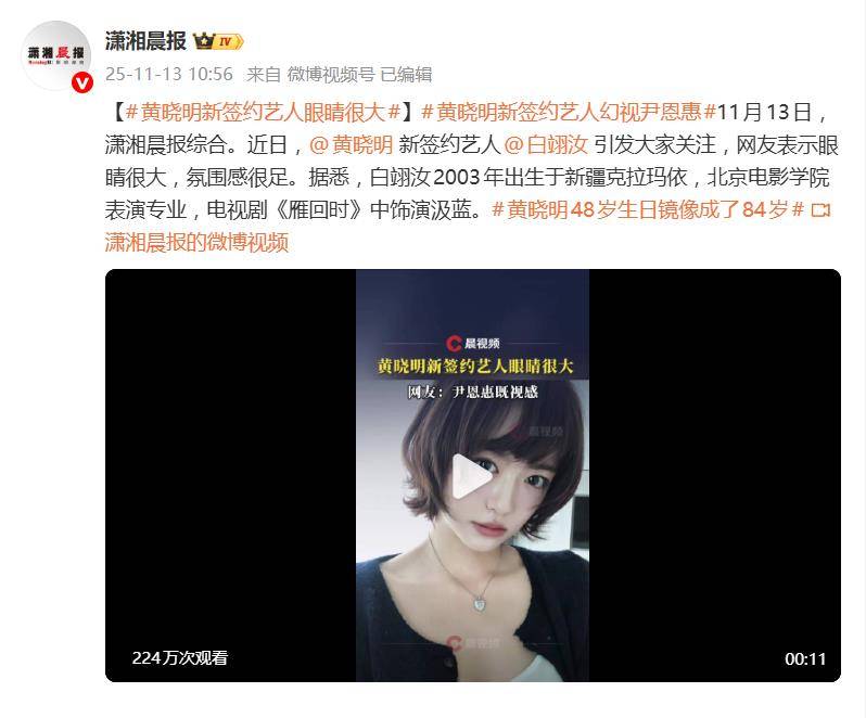 据11月13日报道,黄晓明旗下易星传媒签约的新人演员白翊汝突然刷屏,只因一双“大得能吸睛”的眼睛。网友一边感叹“这眼睛是真实存在的吗”,一边翻出她的