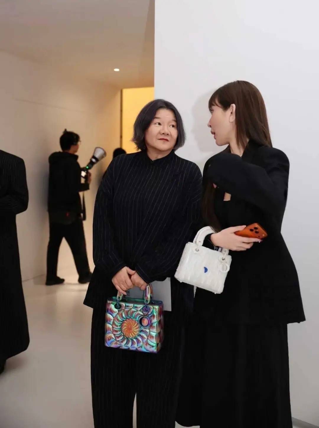 洪晃还和现场的工作人员合影了,她175的个子、非常有气场。手里拎着爱马仕包包、就像拎着买菜蓝子一样的松弛。