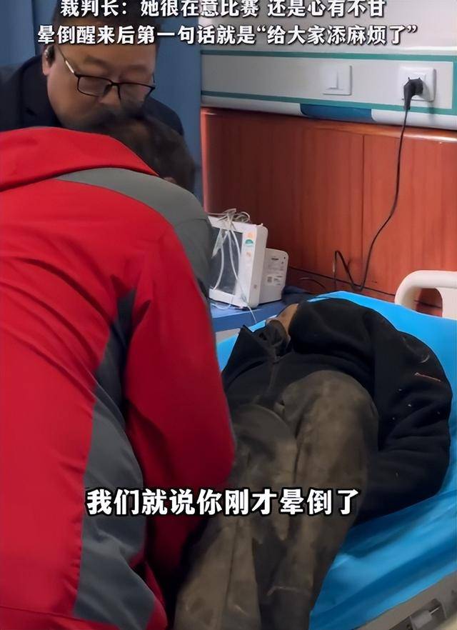 据裁判长透露,她是因为害怕退赛太紧张了,太在意这场比赛,所以紧张到呕吐晕厥然后晕倒,不过幸好被工作人员扶住了,然后失去意识被紧急送去医院。