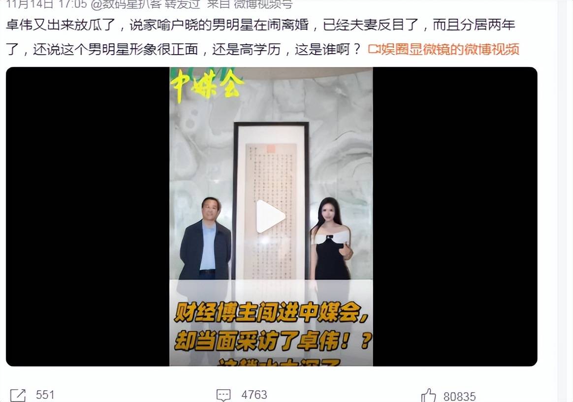 卓伟近年爆料模式从“实锤”转向“悬念式预告”,搞含沙射影,被指为维持流量或施压手段,且未提供分居照片、法律文书等证据。