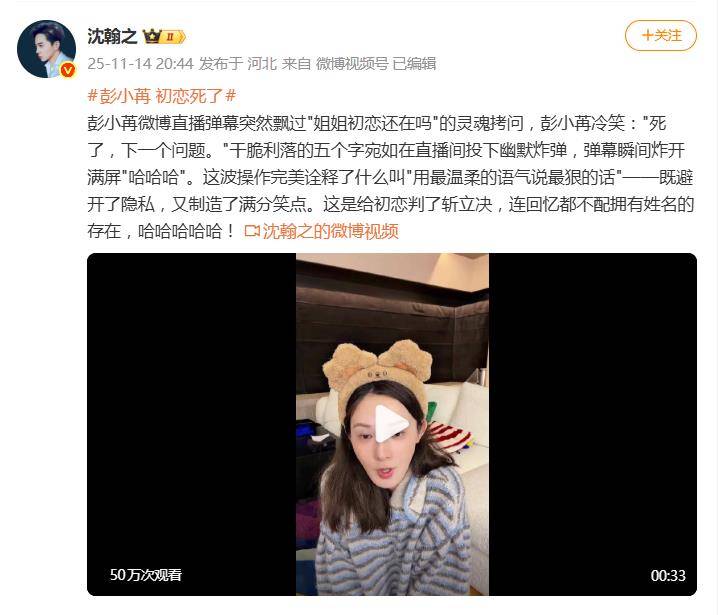 当直播弹幕飘来“姐姐初恋还在吗”的灵魂拷问时,彭小苒眉头一挑,冷笑回应:“死了,下一个问题!”——短短五个字,瞬间炸出满屏“哈哈哈&rdquo