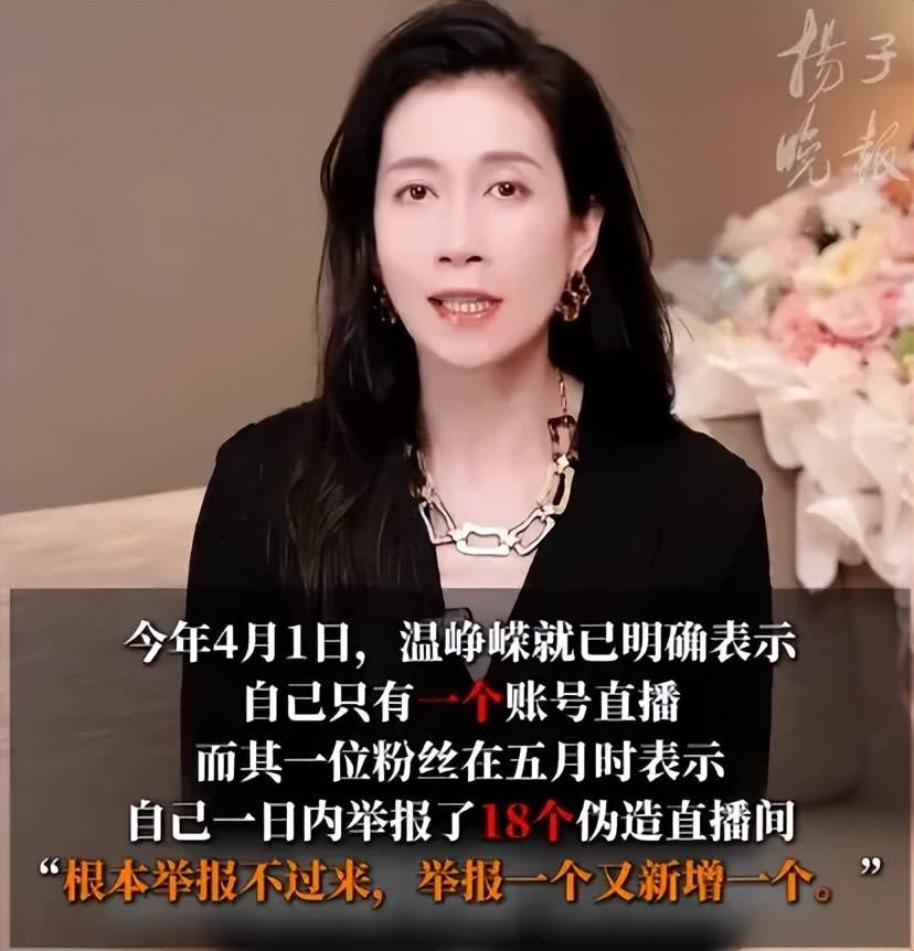 而温峥嵘本人也在今年4月对外表示自己被AI温峥嵘冒充卖山寨假货,他们不停更换ID,但她本人只有一个账号,且珍惜自己的声誉爱惜大家,不会推荐假货,支持大家举报。