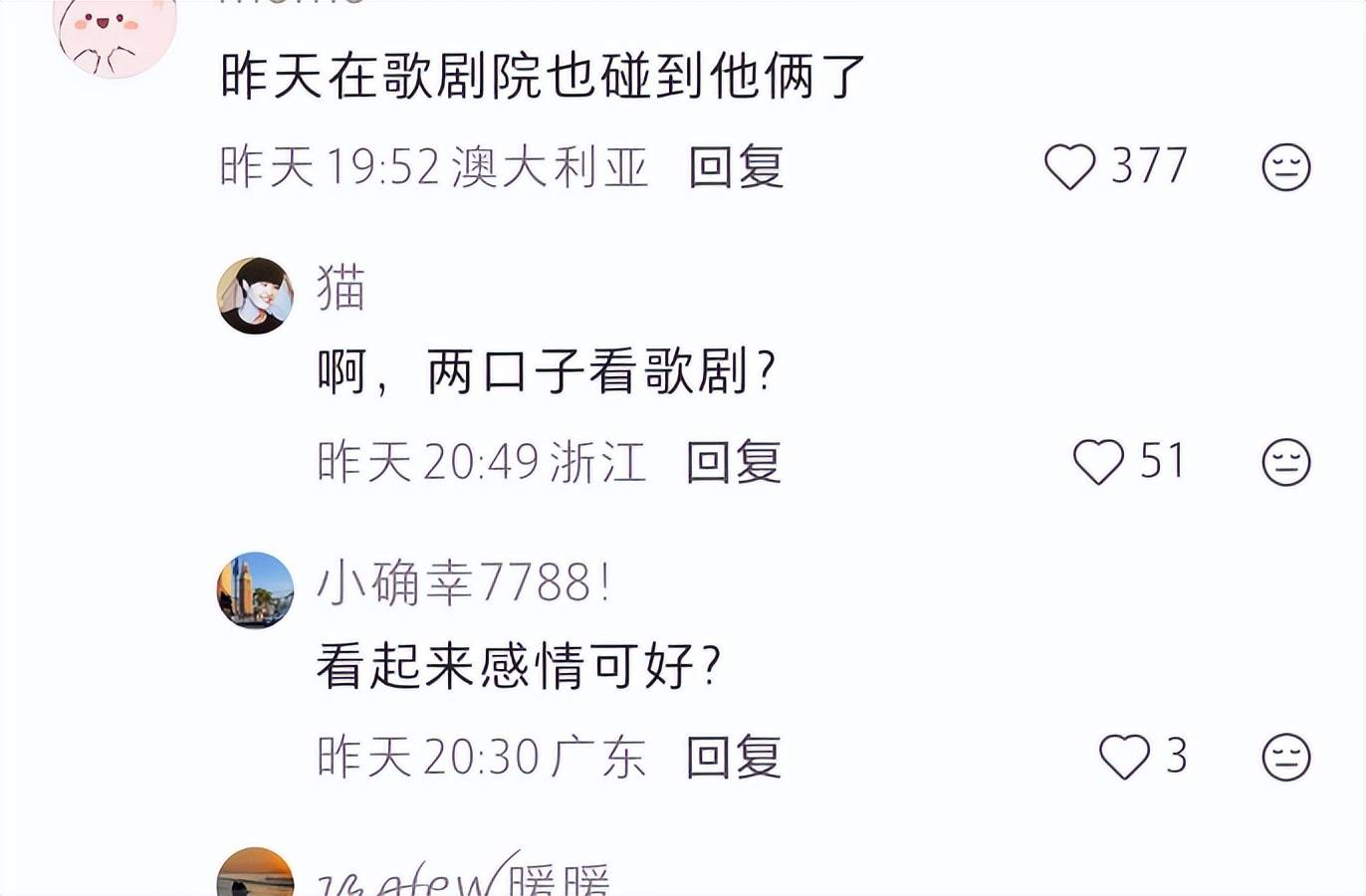 澳洲到处都有网友偶遇他们,两人在澳洲逛街约会、看了歌剧,各种浪漫的事情都做了。