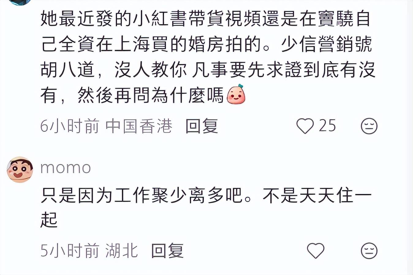 从何超莲最近拍视频的一些细节里,也能看出两人的感情没有变故,她依然在窦骁购置的婚房里录视频。