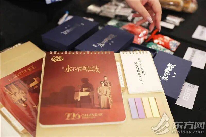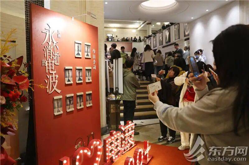 为了庆祝这一特殊时刻,美琪大戏院也变身为《永不消逝的电波》主题空间,呈现出一场沉浸式的视觉盛宴。剧中的“李侠阁楼”打卡装置成功还原了舞剧中的经典场景,紧接着,精心设计的戏服道具展区展现了舞剧的每一个细节,彰显了匠心独运。纪念演出的专属背板、风雅颂韵的立牌、留言墙和巨幅海报的亮相,让观众仿佛身临其境,感受剧目背后沉淀的独特魅力。同时,主办方也推出了纪念版衍生品礼包致谢粉丝,在开场前和中场休息时,身着剧中服装的工作人员还在观众席间举行了玉兰花快闪售卖,现场氛围热烈、欢愉。