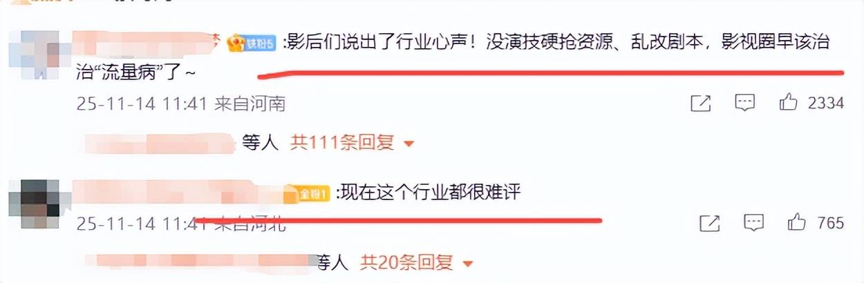 有人力挺影后:“早就该有人说真话了!”也有流量粉丝不服:“我们哥哥数据好怎么了?市场说了算!”还有业内人士爆料:“现在一部剧70%预算都给了流量演员,编剧服化道加起来才15%,能拍出好东西才怪!”