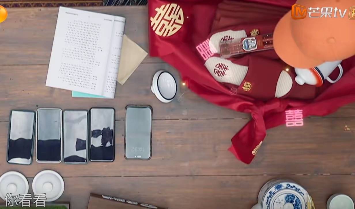 黄磊准备的新婚三件套,里面有红色的拖鞋、牙刷、还有一个搪瓷缸子,虽然都是不起眼的小物品,但是被包袱包裹着很喜庆。