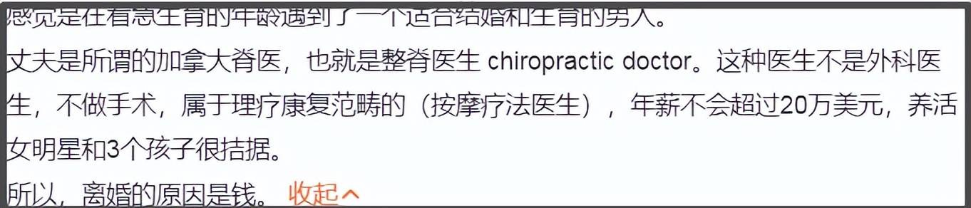 说到收入,钟嘉欣丈夫的经济状况远远不如她。有懂行的医生介绍钟嘉欣丈夫的职业,称他并非做手术的外科医生,属于理疗康复范畴,也就是按摩医生,年薪不超过20万美元(140万人民币),根本养不起女明星和三个孩子。