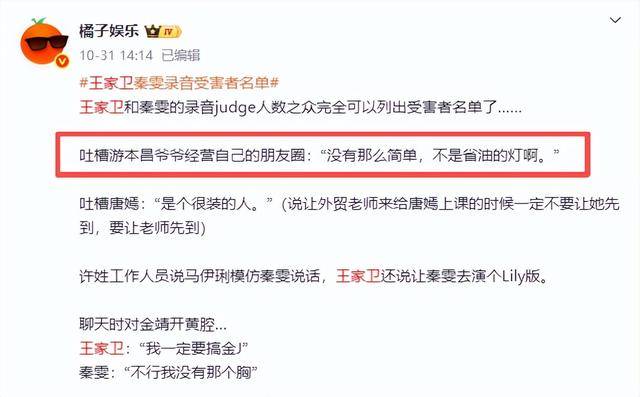 在古二爆出的录音中,王家卫和秦雯两人,几乎把整个娱乐圈都给“蛐蛐”了一遍。