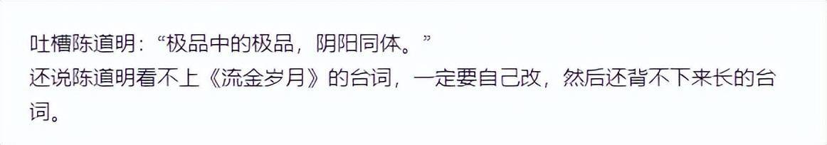 甚至在形容陈道明老师时更加夸张,直接吐槽陈老师是“极品中的极品,阴阳同体”。