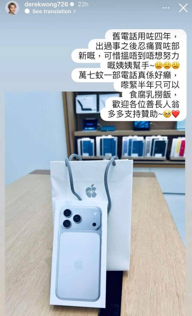 除此之外,他还有份参与大制作的剧集,比如《黑色月光》、《反黑英雄》等等,工作收入应该是不错的,不过尽管在不断提升的黄建东。近日却在社交平台上发文,表示自己因为买了部手机而经济很困难。