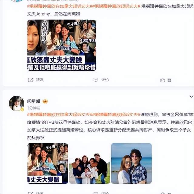 “港媒曝钟嘉欣在加拿大起诉丈夫”