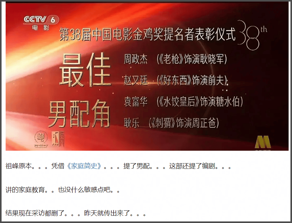 本届金鸡奖的竞争也是很激烈,甚至颁奖前还有网友发现某影片提名突然被撤销,引起一阵热议。