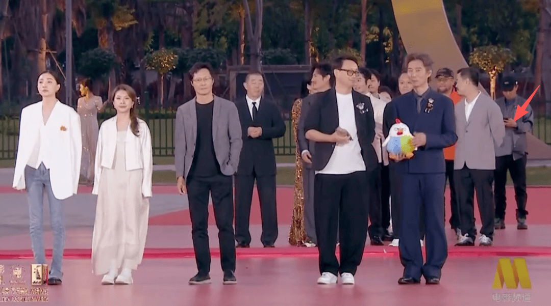 不过这次金鸡入场仪式的安排有些不太一样,居然是排队走红毯,室外红毯本来就冷,还排队等着。镜头扫过入口,乌泱泱一堆人,画面看着也不太好看。排在后面的人太多,有的嘉宾等太久了,直接在红毯候场区玩手机,也是很松弛了。