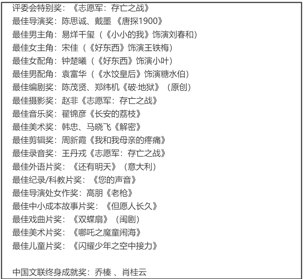 最后附上获奖名单,几家欢喜几家愁,大家觉得满意吗?