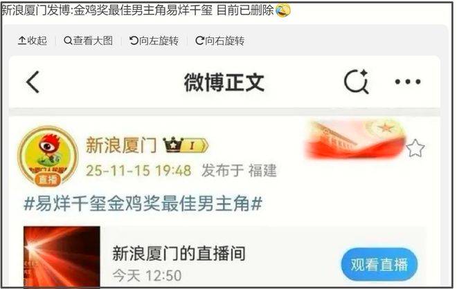 此外,还有网友发现在奖项正式揭晓前,媒体就已经创建了 “易烊千玺金鸡奖最佳男主角”的词条,被发现后还删除了。联想到此前也出现官媒提前泄露奖项的情况,也让大家对于易烊千玺拿奖提出了质疑。