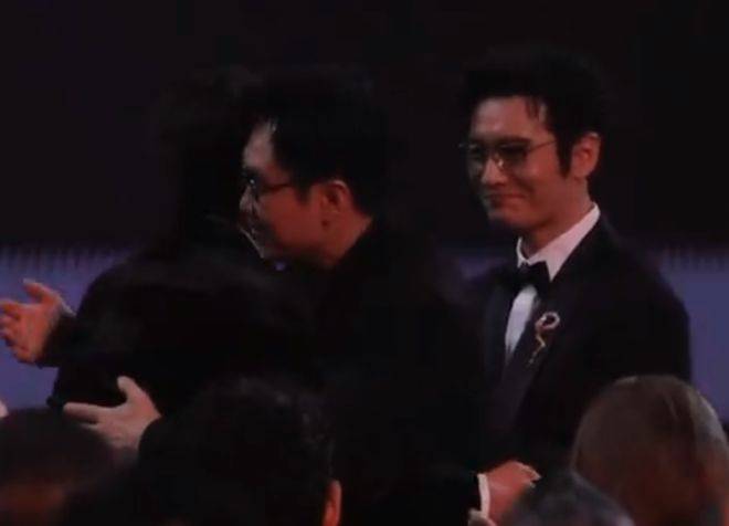 再看易烊千玺拿奖后众星的表现也很精彩,大鹏和黄晓明第一时间站起来,轮番和易烊千玺拥抱。黄晓明更是含着笑满脸祝福,易烊千玺都准备上台了,他还对着易烊千玺竖大拇指。