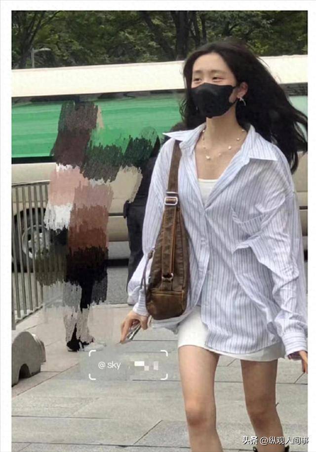 保姆牵着双胞胎走在右侧,穿灰色连帽卫衣的张杰抱着咘芽垫后,可以说是一个人照看三个娃,全都是细节。