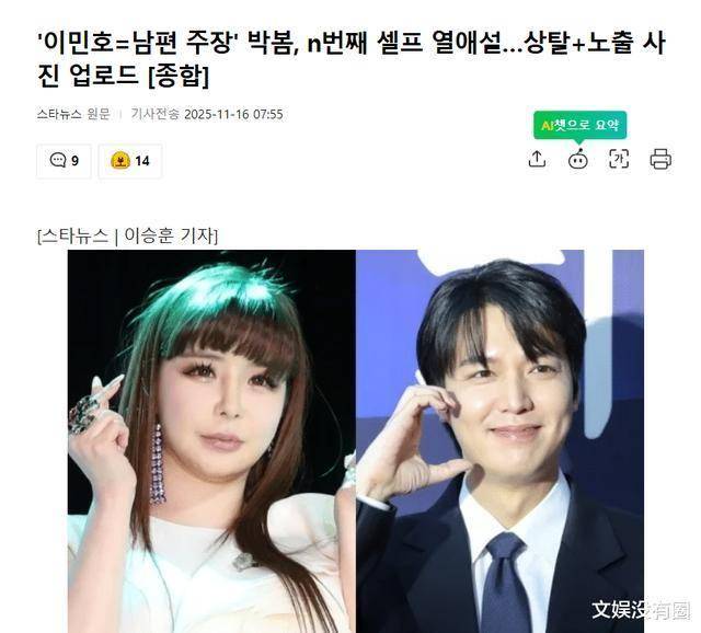 然而,这一切据说都是朴春单方面的“迷恋”。自去年起,她便不断通过个人 SNS 发布与李敏镐相关的内容,并频繁引发着外界对两人“恋爱”的猜测。据悉,她常以类似方式把两人的照片组合在一起,并配上“这是我老公”“真的老公”等文字,持续对李敏镐表达着过度的“爱意”。
