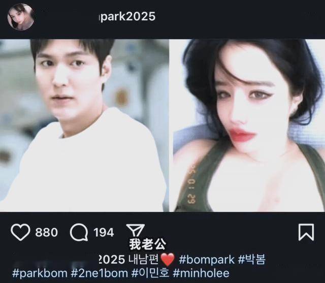 女团 2NE1 成员朴春(Park Bom) 又一次让演员 李敏镐 陷入了尴尬的境地。据外媒报道称:本月 15 日,朴春在个人 SNS 上上传了标题为“朴春♥李敏镐”的内容,并放